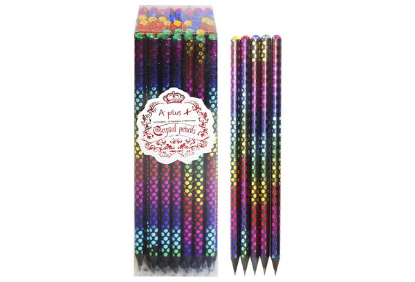 Карандаши черные с фольгой разноцветной, PVC коробка (с крышкой), точки